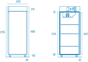 - Revestimento exterior e interior em aço inox AISI 304 18/8 exceto costas, fundo e teto exterior