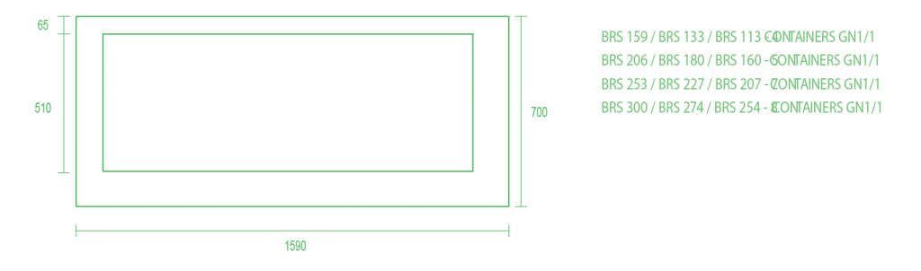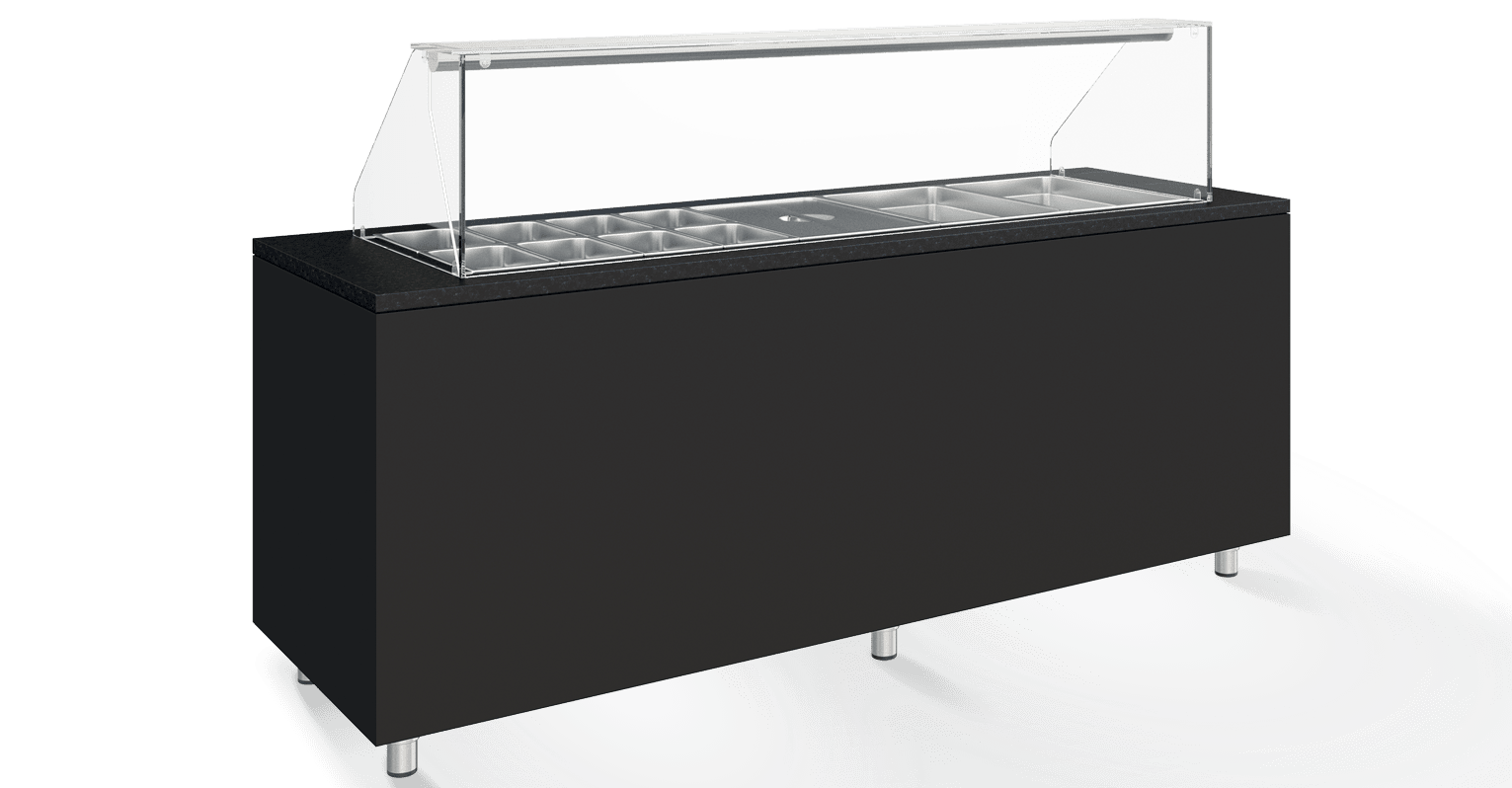 - Montra de vidro com iluminação. Preparada para containers GN 1/1