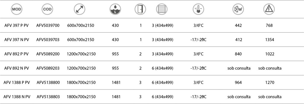 - Modelos negativos com descongelação por resistência automática