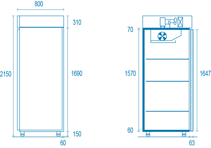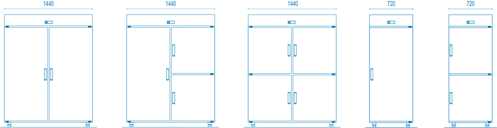- Revestimento exterior e interior em aço inox AISI 304 18/8 exceto costas, fundo e teto exterior