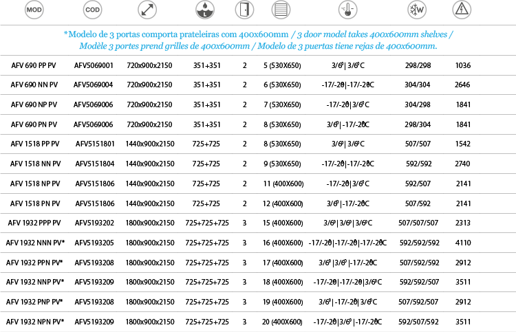 - Modelos negativos com resistência de aquecimento na moldura das portas