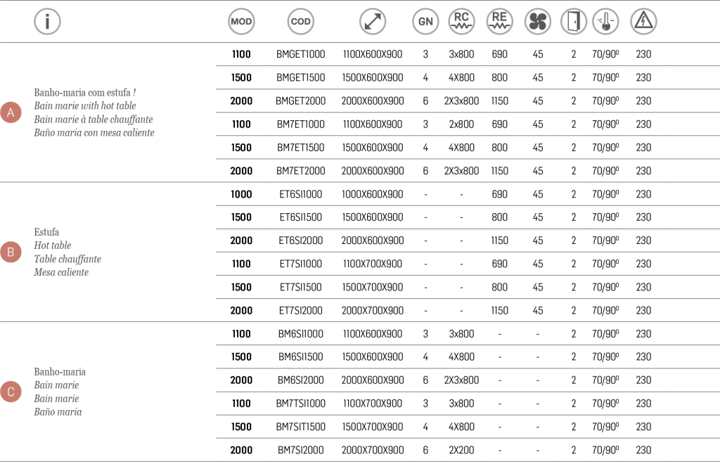 • Acabamentos arredondados para facilitar a limpeza e a higiene