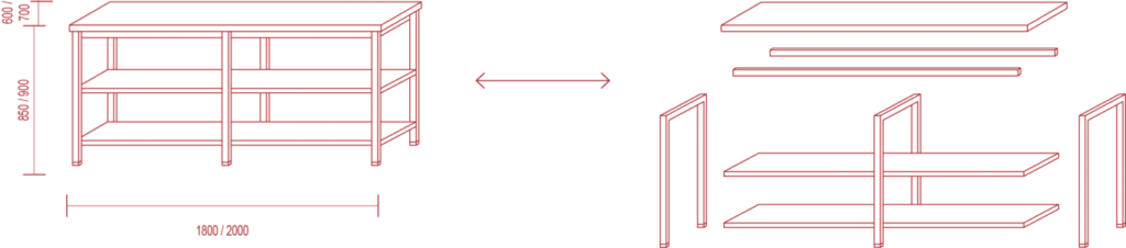 - Desmontável, permitindo facilidade e poupança de espaço a nível de transporte
